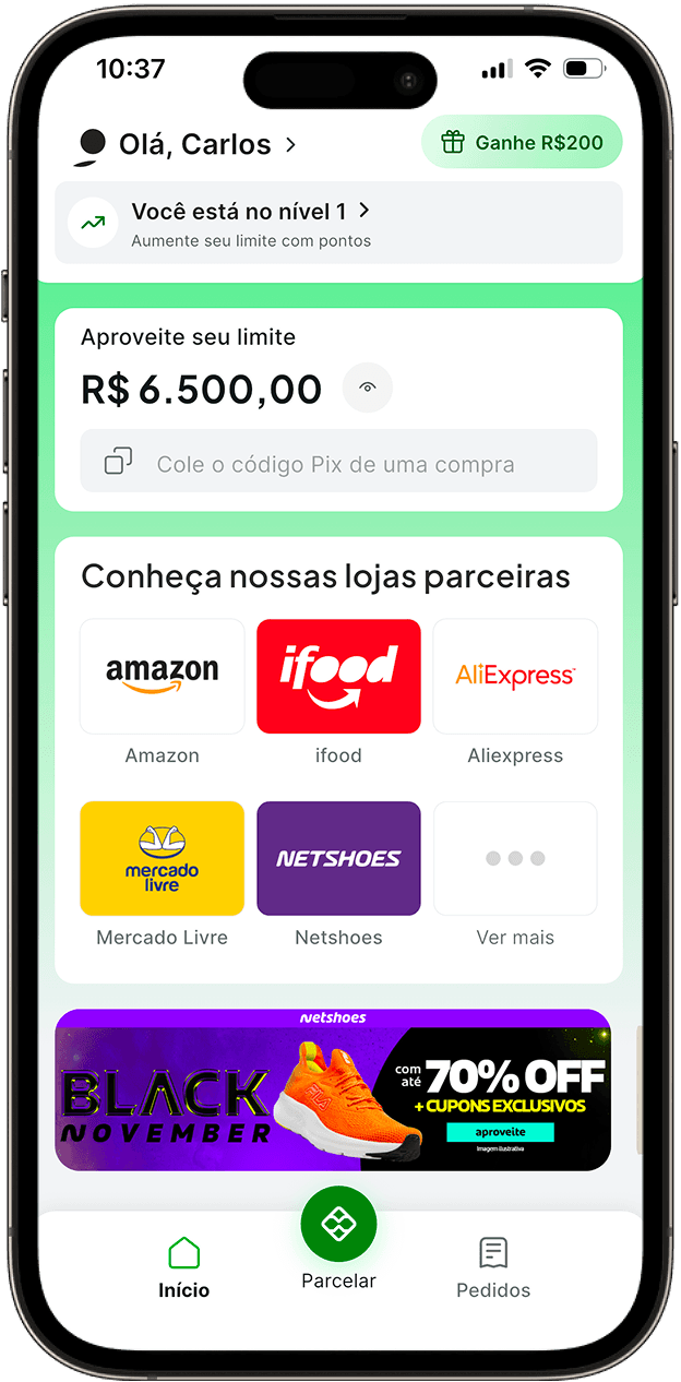 Aprovação imediata de acordo com seu perfil. Comece a comprar no mesmo dia.